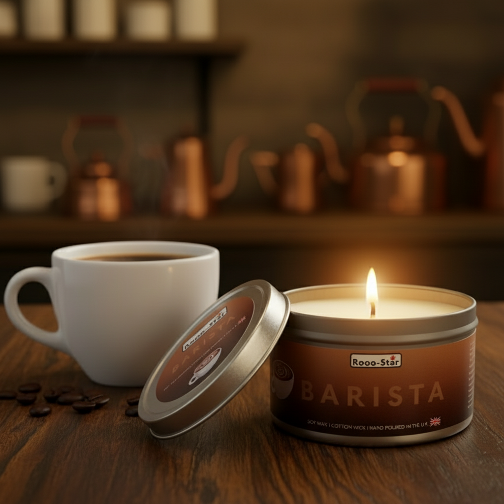 Our Barista Candle captures the irresistible charm of a luxury coffeehouse, where the rich aroma of freshly roasted beans fills the air. Deep, velvety coffee notes mingle with hints of dark chocolate and a gentle touch of warm spice, creating a fragrance that’s both indulgent and uplifting. Light this candle to awaken your senses and bring a comforting, café-style warmth to any space. Perfect for slow mornings, creative afternoons, or cosy evenings, the Barista Candle turns your home into a haven of aromatic sophistication, where every breath feels like a sip of your favourite brew.